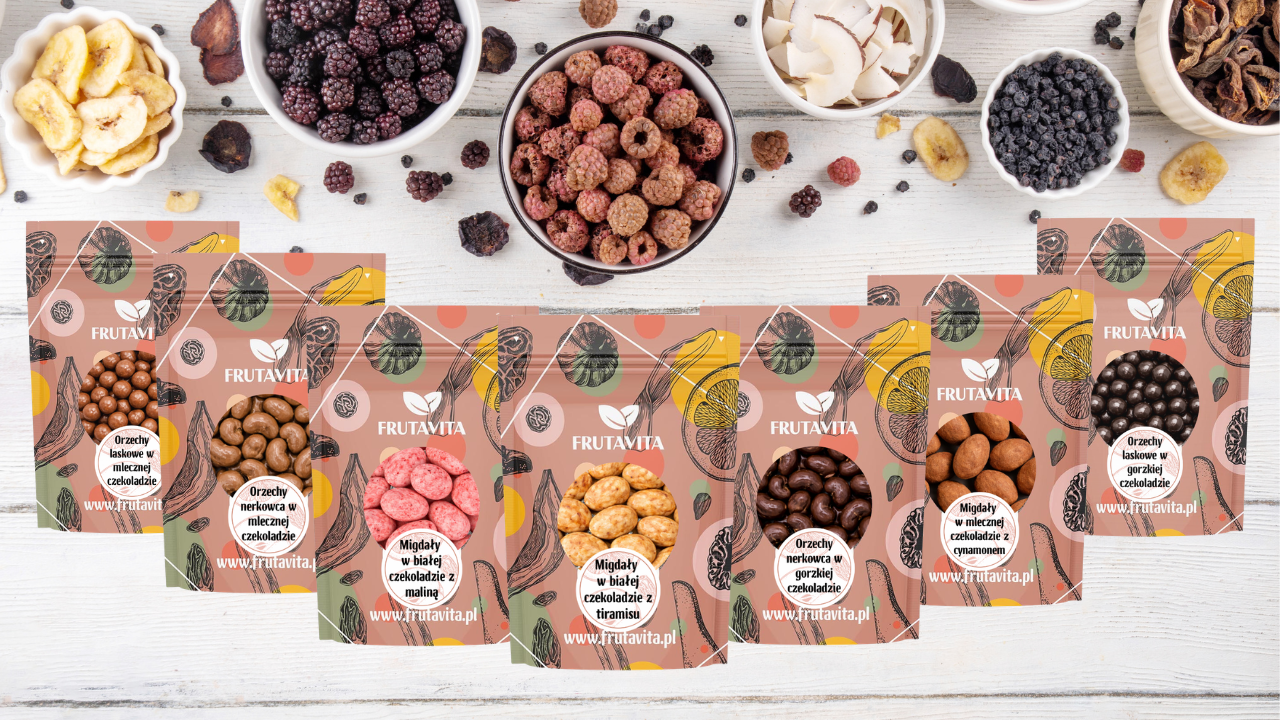 W ofercie Frutavita wyróżniamy cztery główne kategorie zdrowych słodyczy — każda odpowiada na inne potrzeby: smak, sytość, skład lub zastosowanie kulinarne.