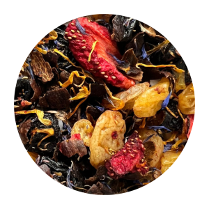 wiśnie, czereśnie, wiśnie kawowca, białe rodzynki, truskawki, aromaty, kwiat nagietka, kwiat bławatkaPrzechowywać w suchym i chłodnym miejscu.