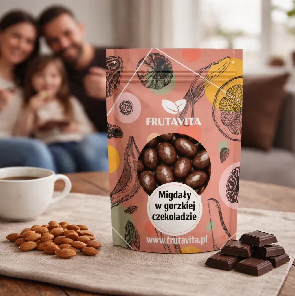 Chrupiące migdały otulone intensywną, belgijską gorzką czekoladą to klasyczne i wyrafinowane połączenie smaków. Delikatnie prażone migdały w zestawieniu z czekoladą o wysokiej zawartości kakao (min. 54%) tworzą idealny balans pomiędzy słodyczą a umiarkowaną goryczką. To doskonała przekąska na co dzień – do kawy, na wieczór lub jako elegancka słodka przyjemność.